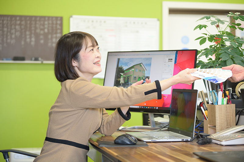 お客様のご希望に合わせて、塗装のイメージがしやすいカラーシミュレーションのサービスを提供しています。建物の色を変えて比べて見ることができるので、じっくりとご検討いただけます。また、見本板を作成して、実際に目で見ていただくことも可能です。色だけでなく質感等もご確認いただけます。