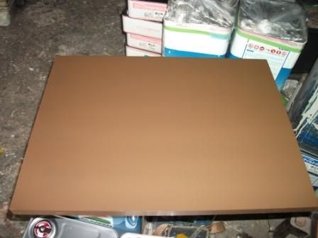 今度は使い古した黒板を塗装します。色も定番の緑や黒ではなく、壁に合わせて茶色にします。