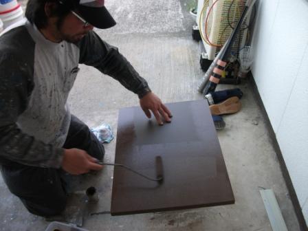 シーラーを塗っています。下地と次に塗られる塗料との密着を良くさせます。